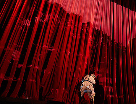 Immer ist die Bühne (Nicole Timm) erkennbar Bühne, ein drehbares Panoptikum aus Schein und Sein und Zeit, ist — King Kong lässt grüßen — Lichtspielhaus und Filmkulisse, Schauspielkantine und kafkaeskes Gericht. Dieser „Mephisto“ ist ein großes Spiel, eines auf Leben und Tod und um die Frage, wie weit man für Ruhm zu gehen bereit ist. Es geht ums Ganze, das große Ganze. —Neue Presse